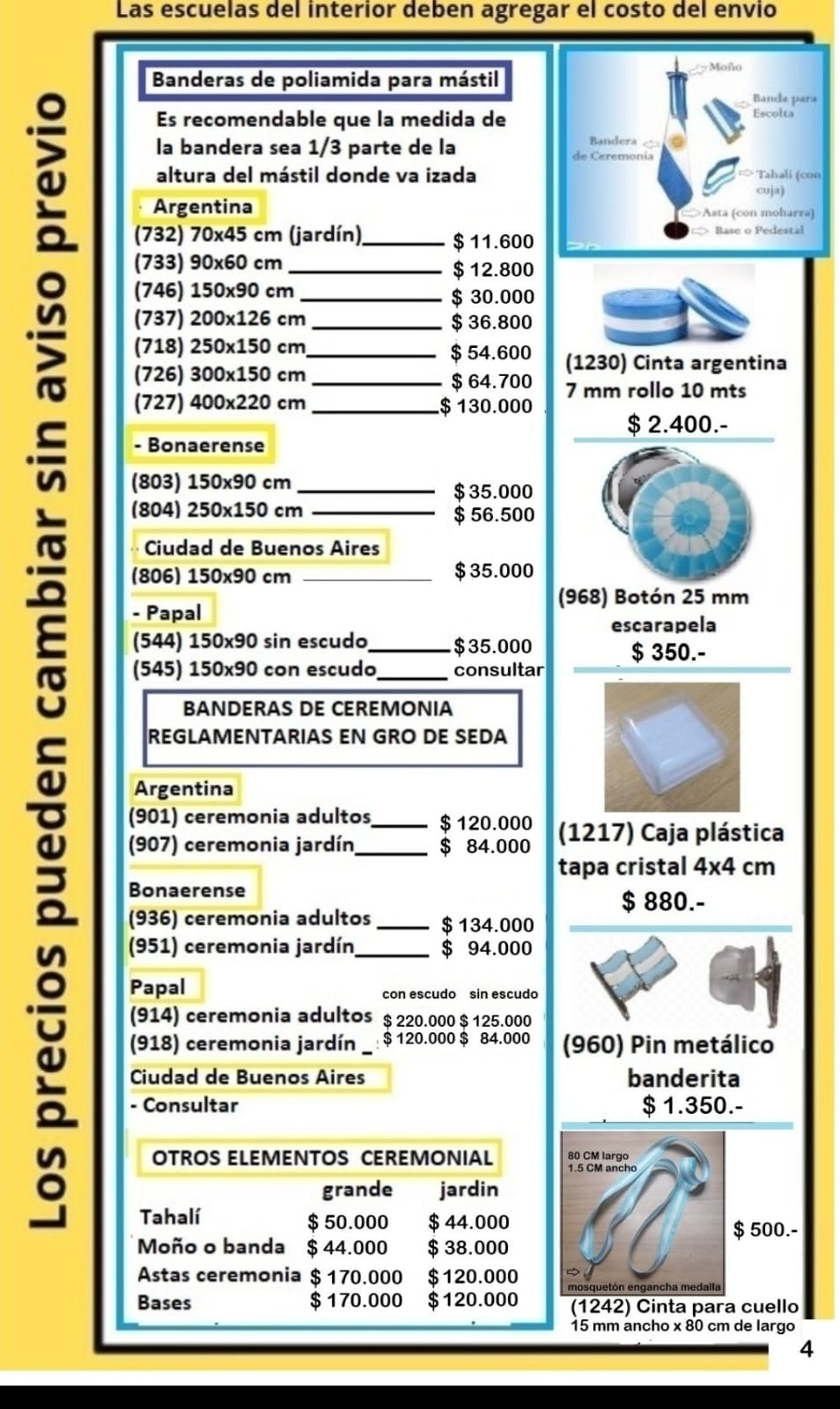 Que los pedidos sean claros. - No olvide de colocar el whatsApp, Mail o teléfono de la persona responsable. - Cuando envíe su pedido cerciórese que lo hayamos recibido en forma clara. - Todo pedido debe ser abonado al momento de realizarlo - Si son trabajos especiales la entrega en aproximadamente dentro de los 15 días. Los diseños deben ser en JPG. -ESCUELAS DEL INTERIOR::Los pedidos se remiten por Correo Argentino o por VIA CARGO a elección del comprador. - Los gastos de envío corren por cuenta del cliente